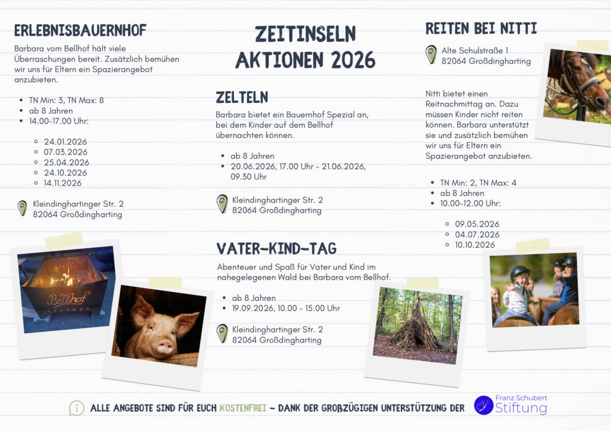 Dieses Angebot wendet sich ganz speziell an betroffene Kinder und Jugendliche und bietet auch im Laufe dieses Jahres verschiedene Aktivitäten an, um in Gemeinschaft eine schöne Zeit zu verbringen.